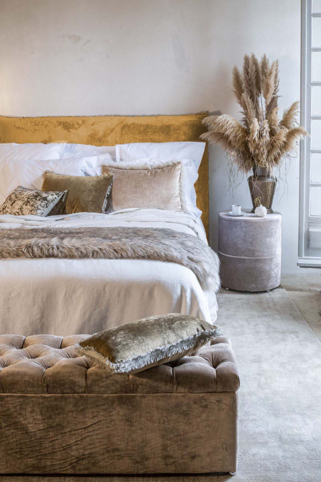 La tête de lit Mila est fabriquée à la demande dans n’importe lequel de nos tissus velours Tsar.