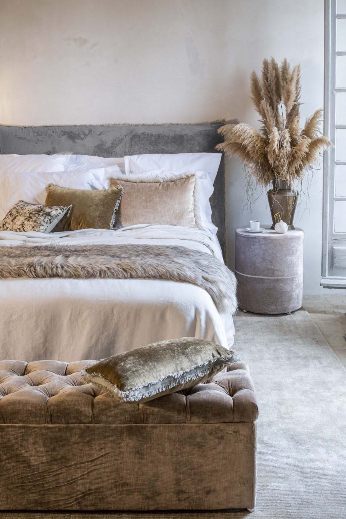 La tête de lit Mila est fabriquée à la demande dans n’importe lequel de nos tissus velours Tsar.