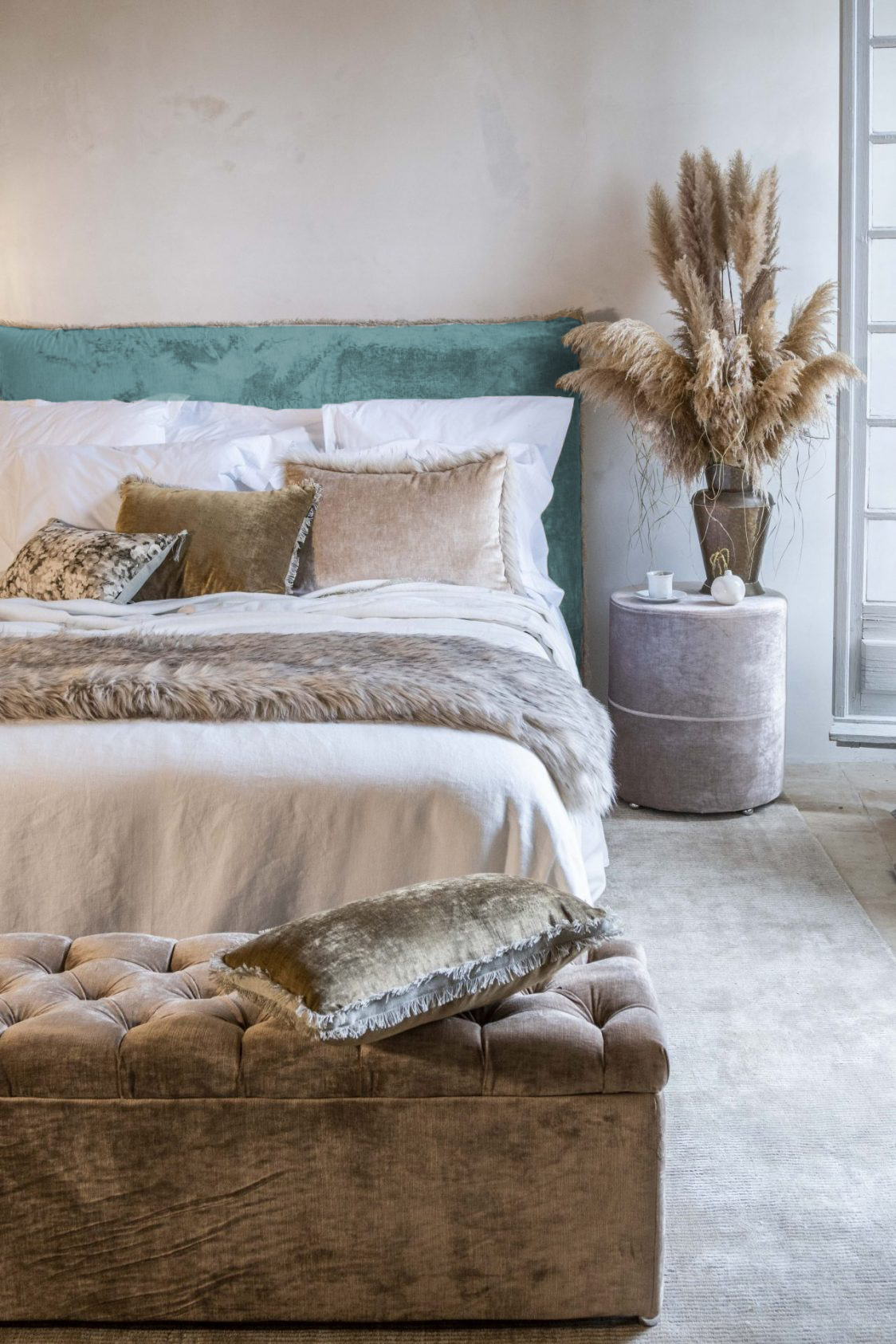 La tête de lit Mila est fabriquée à la demande dans n’importe lequel de nos tissus velours Tsar.