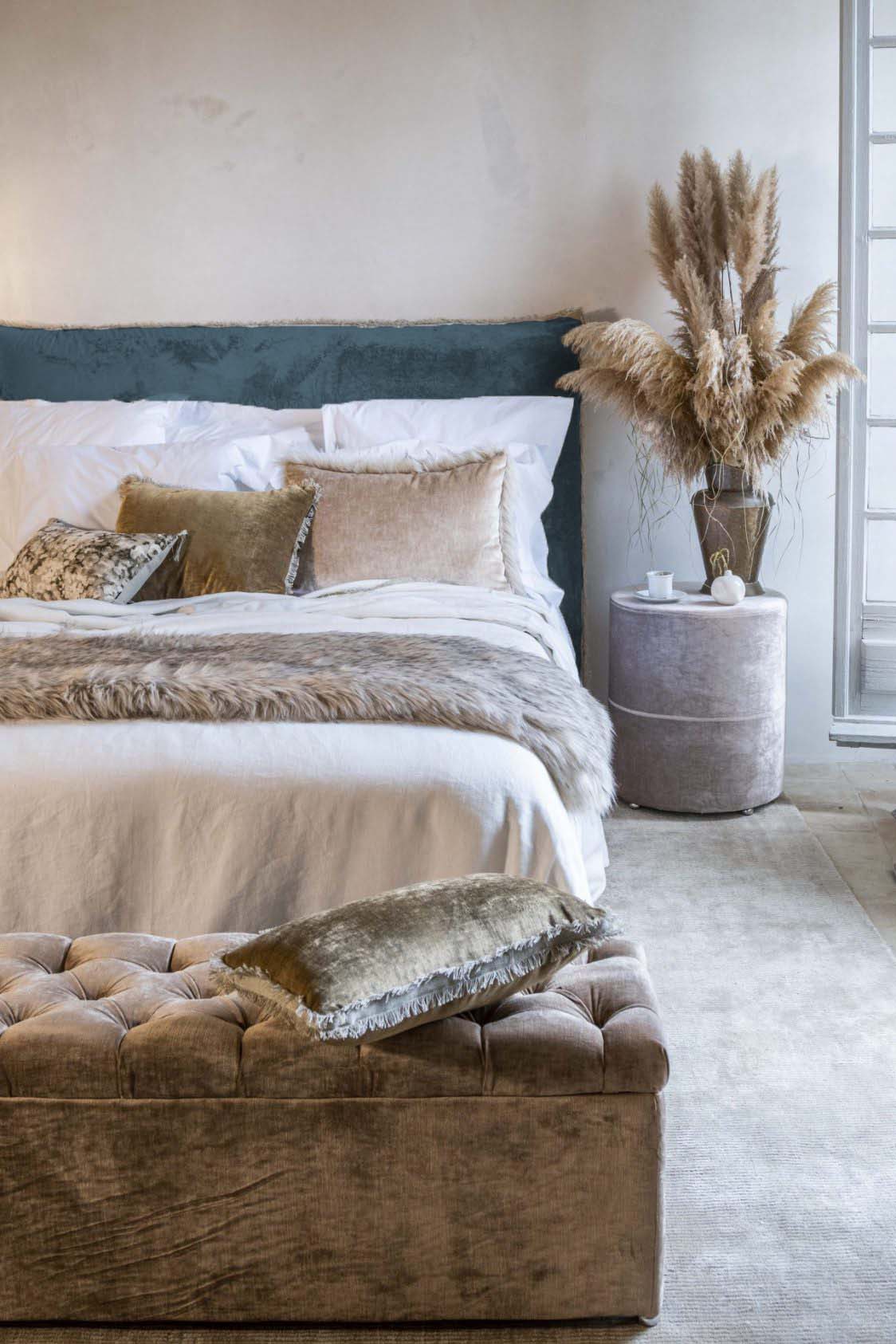 La tête de lit Mila est fabriquée à la demande dans n’importe lequel de nos tissus velours Tsar.
